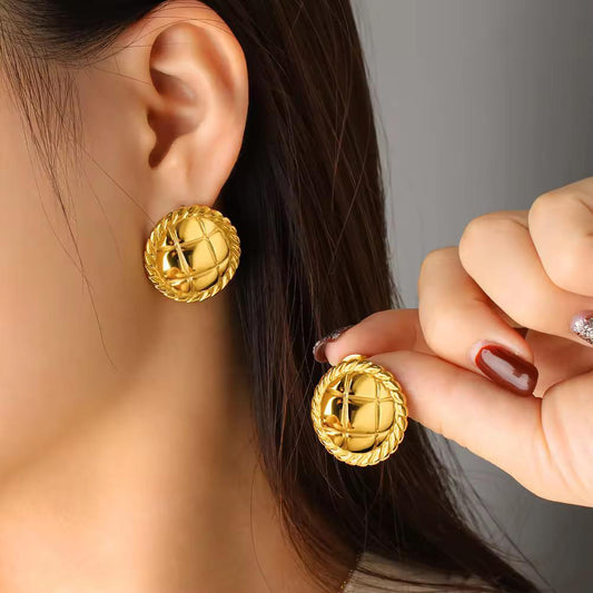 Quilted Round Earrings | 18K Gold Vintage Waterproof