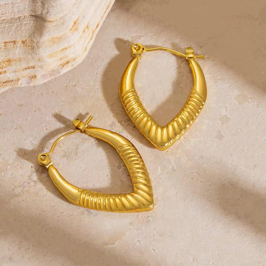 Ribbed Chevron Hoop Earrings | 18K Gold Waterproof Anti-Tarnish