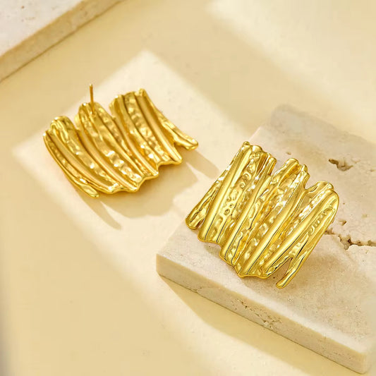 Ripple Texture Earrings | 18K Gold Bold Hammered Waterproof