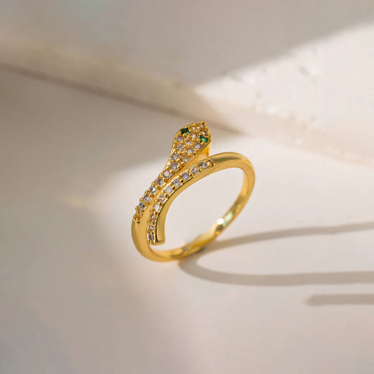 18K Gold-Plated Snake Ring – Adjustable Crystal Wrap Design