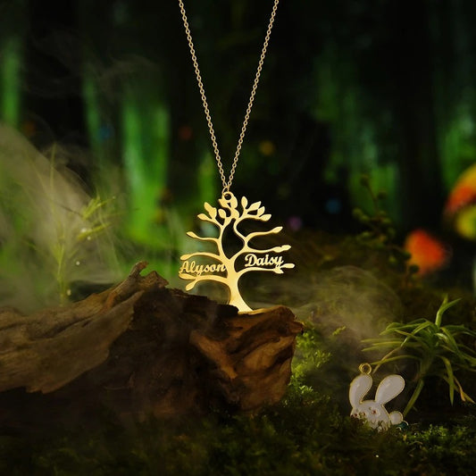 Evergreen Love Tree Couple Name Necklace - Rooted in Forever