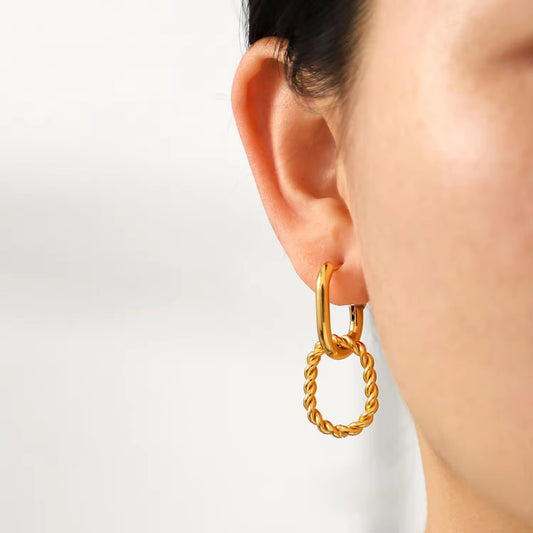 18K Gold Plated Twisted Hoop Dangle Earrings
