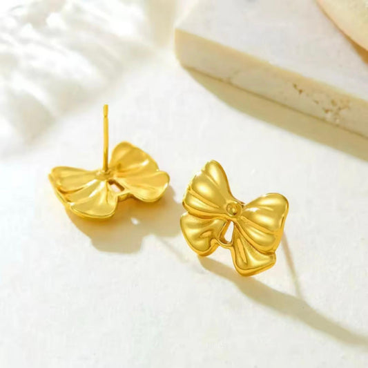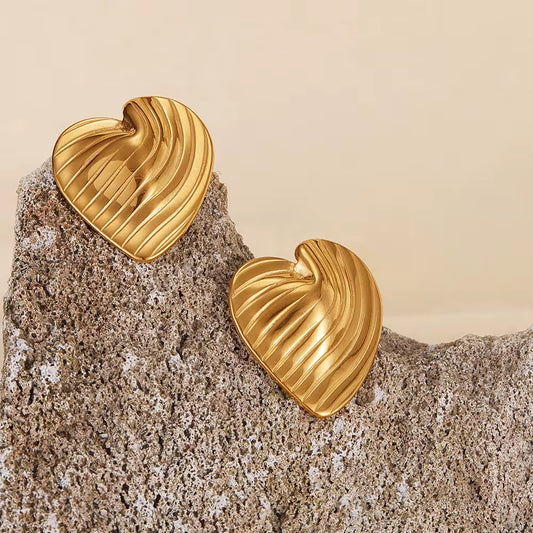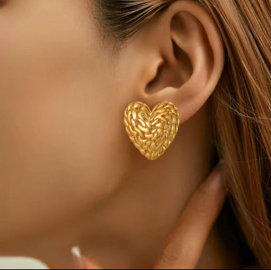 18K Gold-Plated Textured Heart Earrings – Statement Studs