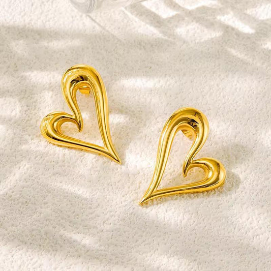 Abstract Heart Earrings | 18K Gold Sculptural Waterproof