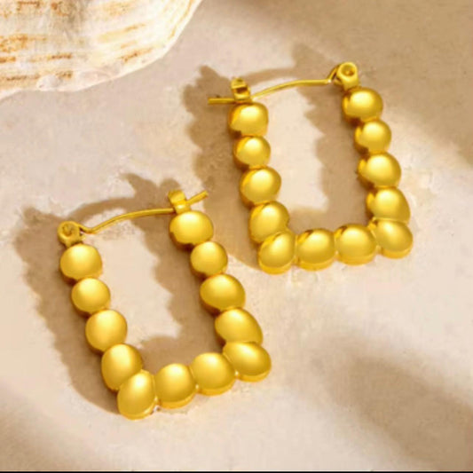 Abstract Beaded Hoop Earrings | 18K Gold Sculptural Waterproof