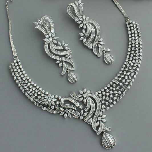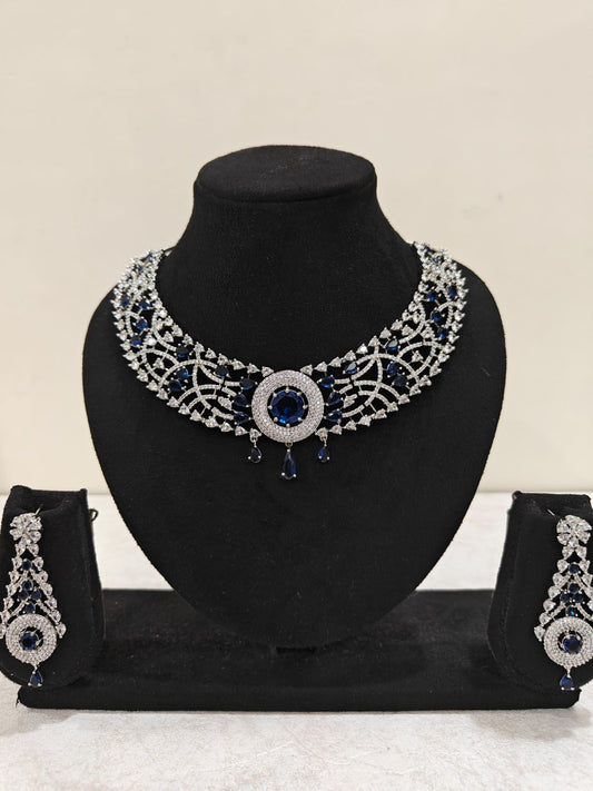Silver Plated Blue Sapphire & AD Necklace Set – Bridal & Party Jewellery