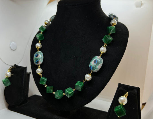 Verdant Pearls and Lustrous Greens Necklace Set