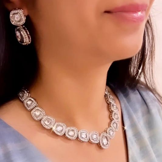 Silver Glamour Kundan Polki Necklace Set with earrings