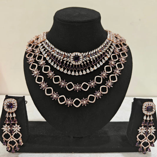 Royal Purple Stone Multi-Layered American Diamond Necklace Set