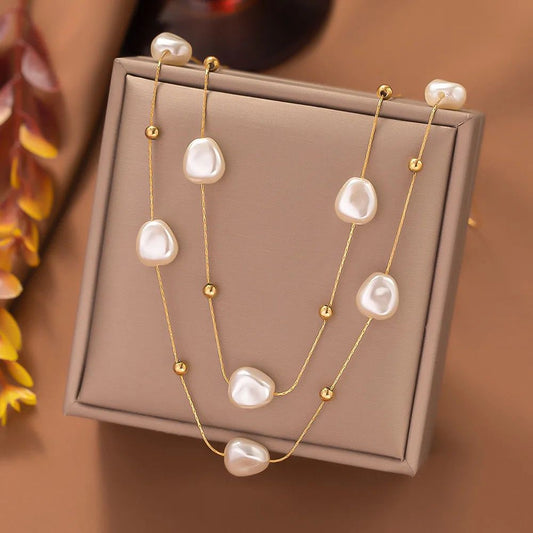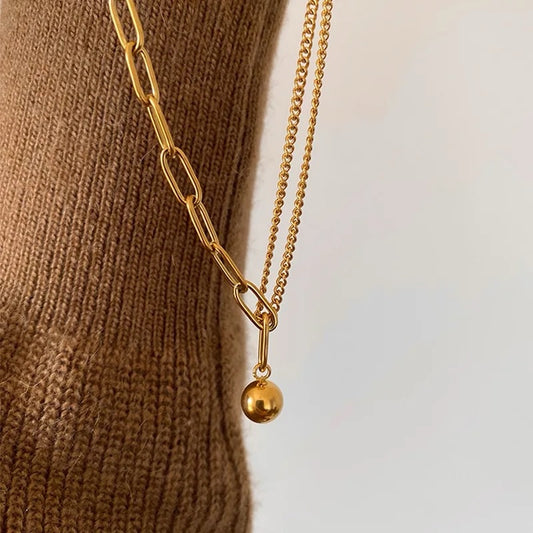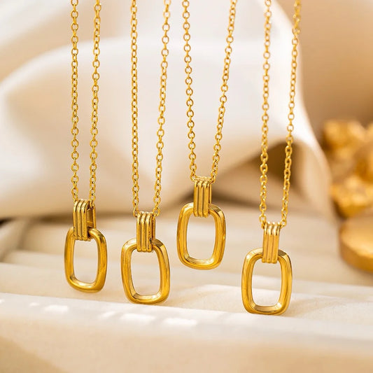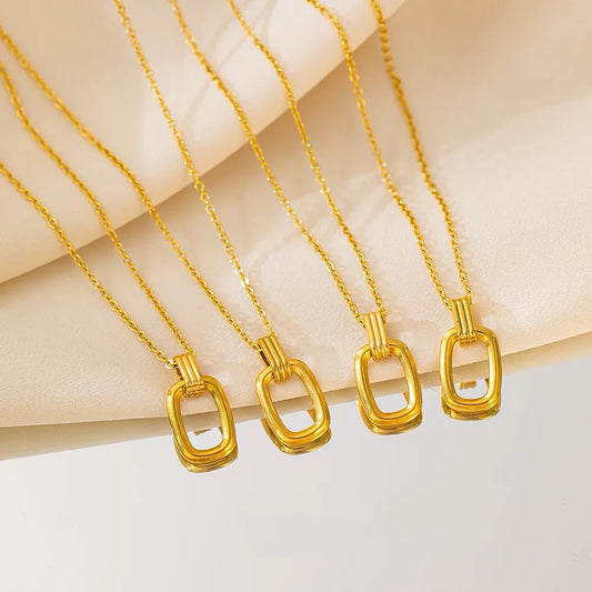18K Gold Titanium Steel Geometric Hollow Necklace