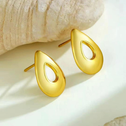 Simple Solid Color 18K Gold Plated Stainless Steel Earrings