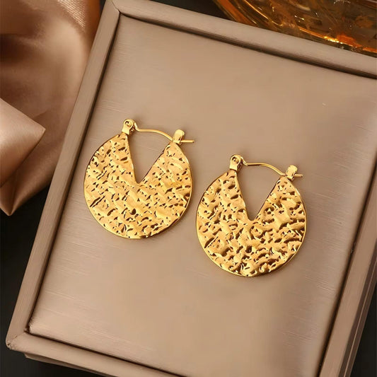 Textured Disc Hoop Earrings | 18K Gold Cutout Waterproof