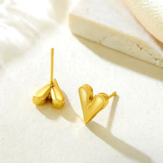 Puffed Heart Stud Earrings | 18K Gold Plated Elegant Design