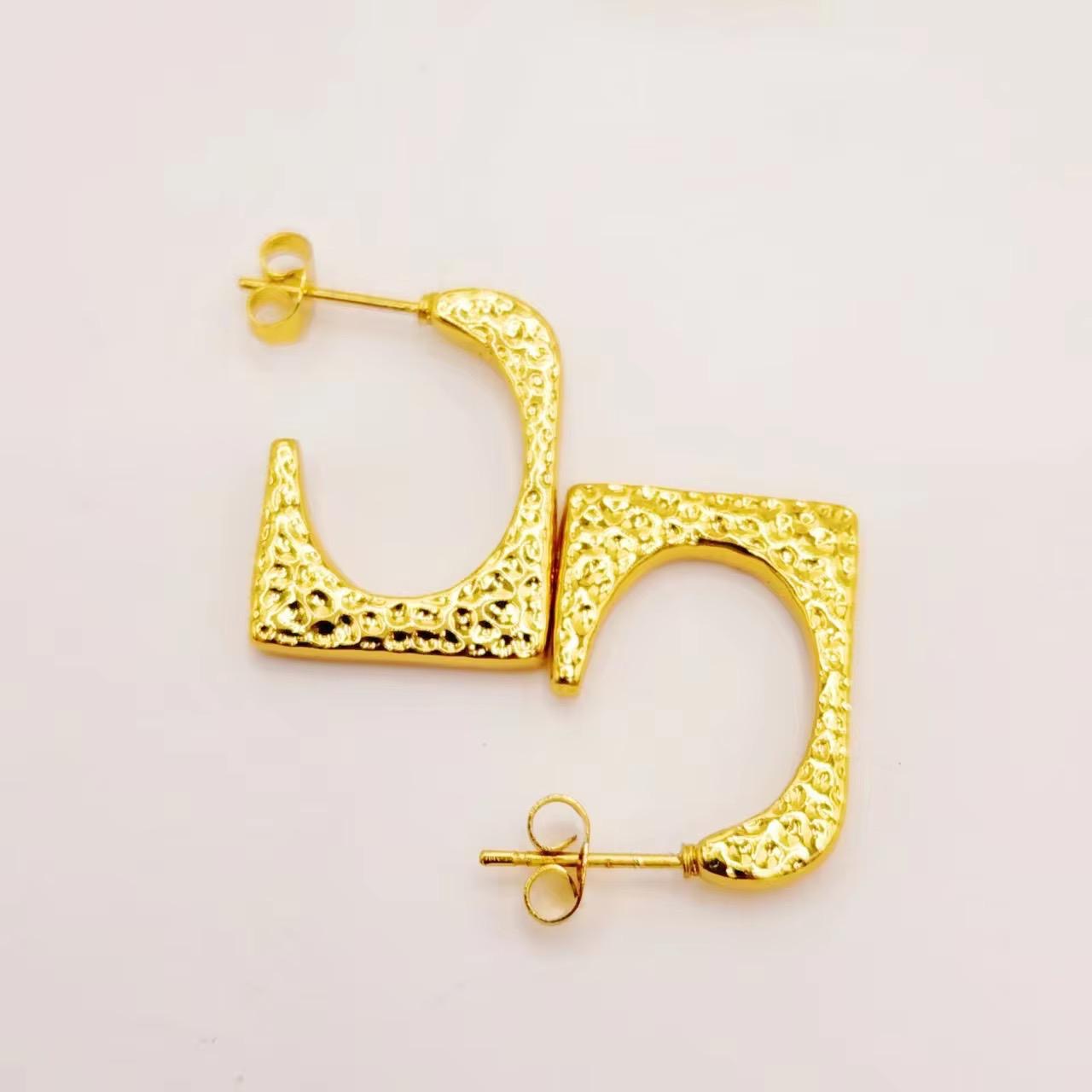 Bold meets minimal in these uniquely structured Geometric Stud Hoops. Designed in a square silhouette with hammered texture and finished in 18K gold plating, these earrings are waterproof, lightweight, and skin-safe — perfect for everyday edge or party glam.