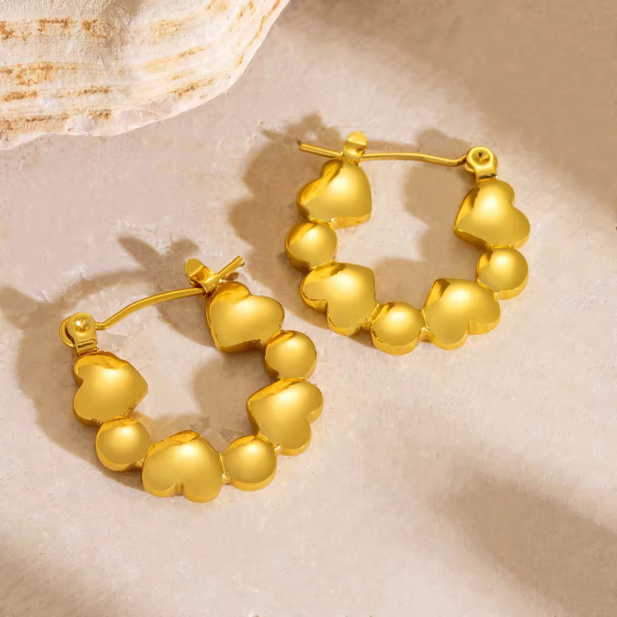 Heart Bead Hoop Earrings | 18K Gold Plated Waterproof