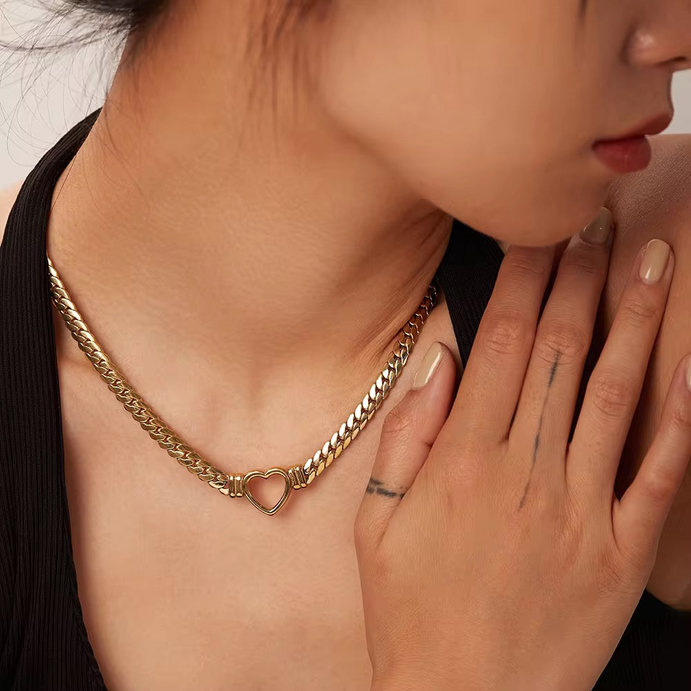 - Bold Chain Design with Heart Accent