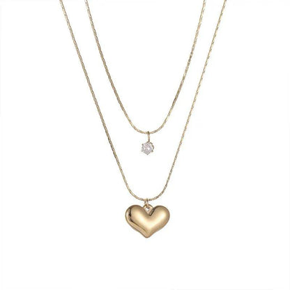 Elevate your elegance with this stunning 18k gold-plated double-layer heart pendant necklace. Crafted from durable stainless steel, this necklace features two delicate chains adorned with a charming heart pendant, beautifully embellished with sparkling cubic zirconia stones. Perfect for daily wear or special occasions, this piece adds a timeless touch of sophistication to any outfit. A meaningful gift for a loved one, it’s designed to last, resist tarnish, and keep its lustrous shine.
