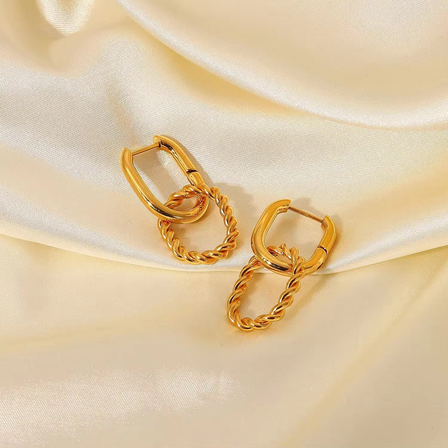 18K Gold Plated Twisted Hoop Dangle Earrings