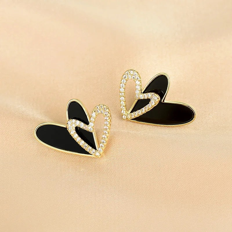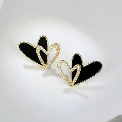 Chic black oil drop heart stud earrings, adding a touch of edgy elegance to any outfit.