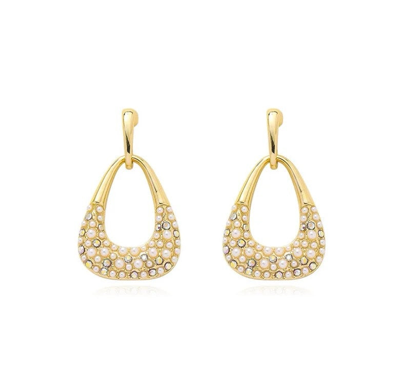 Make a statement with these unique earrings adorned with pearls, rhinestones, and crystals. The perfect combination of elegance and sparkle, these earrings add a touch of glamour to any ensemble. Perfect for special occasions or adding a touch of sophistication to your everyday look.