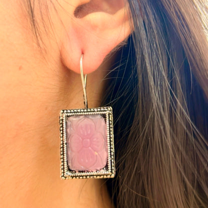 Indulge in the grace of our “Blush Bloom Square Elegance” earrings. These oxidized beauties feature a delicate light pink square stone, adding a touch of softness and sophistication. The intricately designed frame enhances the allure, making them perfect for elevating your style on any occasion. Embrace the subtle charm and modern elegance of Blush Bloom Square Elegance, where every detail reflects a timeless sense of grace and femininity.
