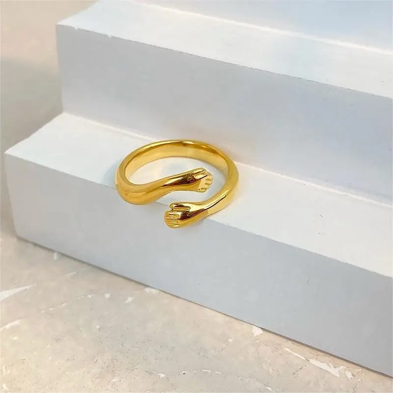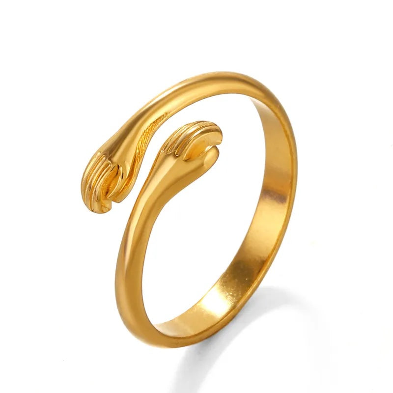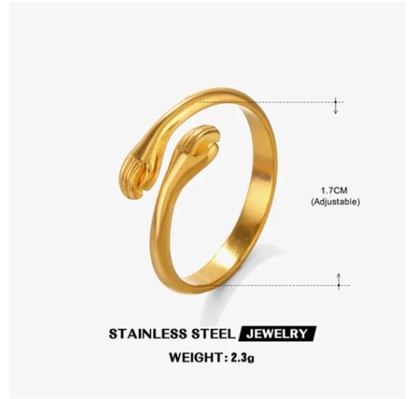 This elegant hand open ring, crafted from 304 stainless steel and plated with 18K gold, features a minimalist design perfect for everyday wear. Its sleek, simple style offers timeless sophistication and versatility, making it an ideal accessory for any outfit. The durable stainless steel construction ensures long-lasting wear, while the gold plating adds a touch of luxury. Lightweight and hypoallergenic, this ring combines comfort with classic elegance.