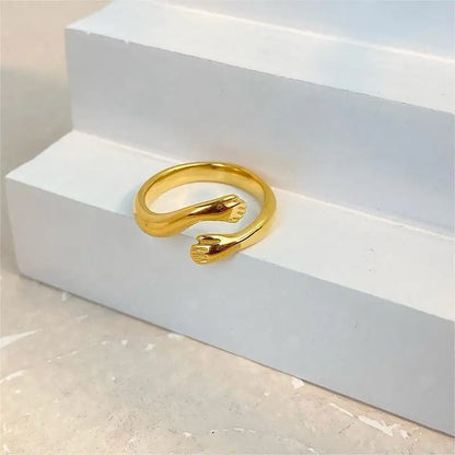 Simple Style 18K Gold Plated Stainless Steel Hug Adjustable Ring-Golden