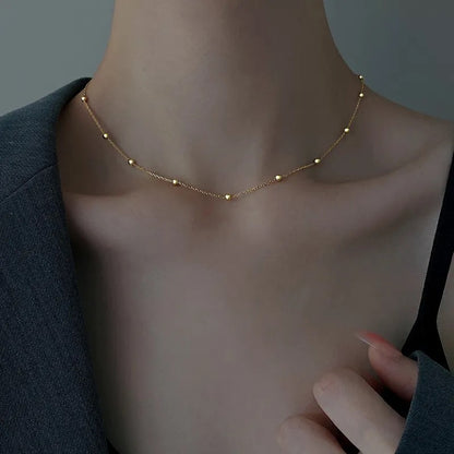 Discover the perfect blend of modern elegance with this stunning combo set. The first necklace features a round dots pendant, crafted from durable titanium steel and plated with 18K gold, offering a sleek and polished look inspired by contemporary Korean style. Paired with it is a simple yet striking geometric titanium steel necklace, perfect for adding a minimalist edge to any outfit. These versatile necklaces can be worn alone for a subtle statement or layered together for a chic, fashion-forward look, making this set an essential addition to your jewelry collection.