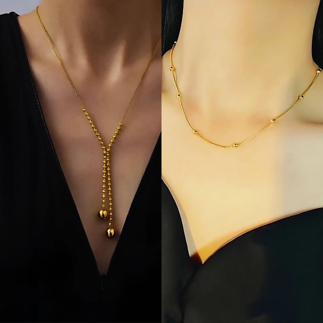 Combo Set : 18K Gold Round Dots & Geometric Titanium Steel Necklace Set