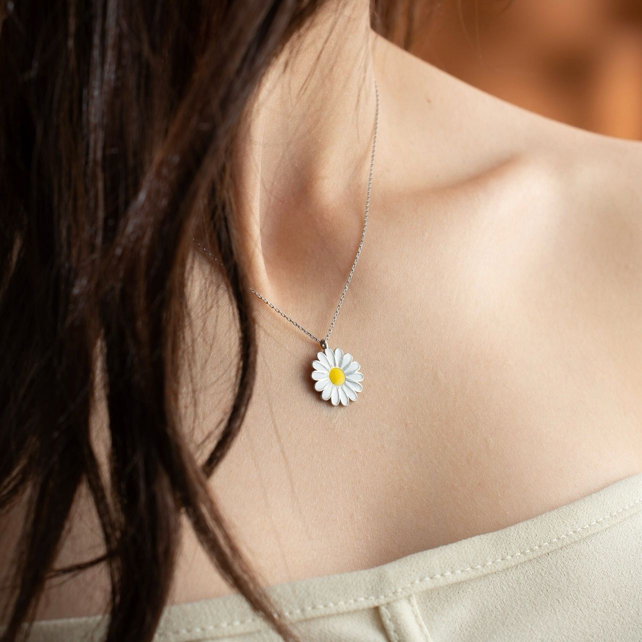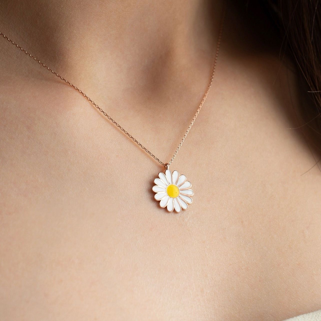 With its understated elegance and timeless appeal, the Dainty Daisy Necklace in White is a must-have accessory for anyone who loves classic and feminine jewelry.