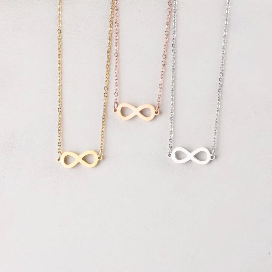 Embrace the elegance of simplicity with our Dainty Infinity Necklace. Featuring a delicate infinity symbol, this piece symbolizes endless love and infinite possibilities. Crafted with a high-quality alloy, the necklace has a sleek, polished finish that adds a touch of sophistication to any outfit. The minimalist design and fine chain make it a versatile accessory, perfect for everyday wear or layering with other pieces. Lightweight and comfortable, this necklace is designed for all-day wear. Add this timeless and meaningful piece to your jewelry collection and celebrate the beauty of eternity.