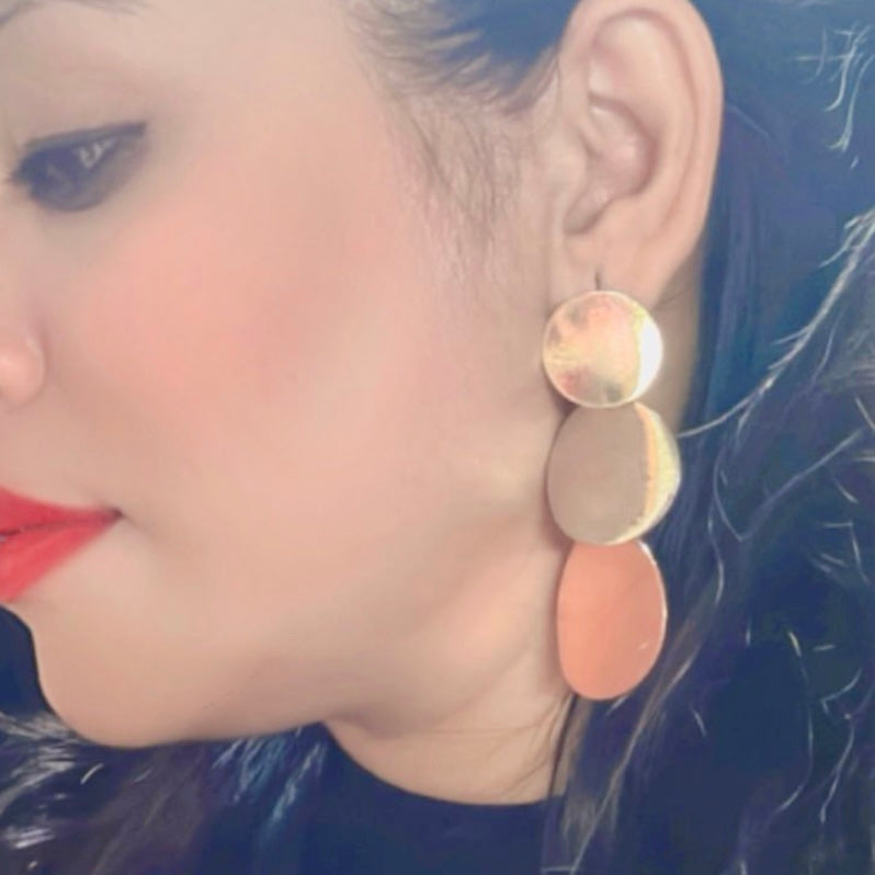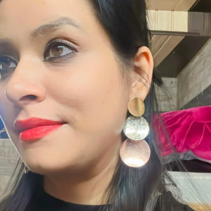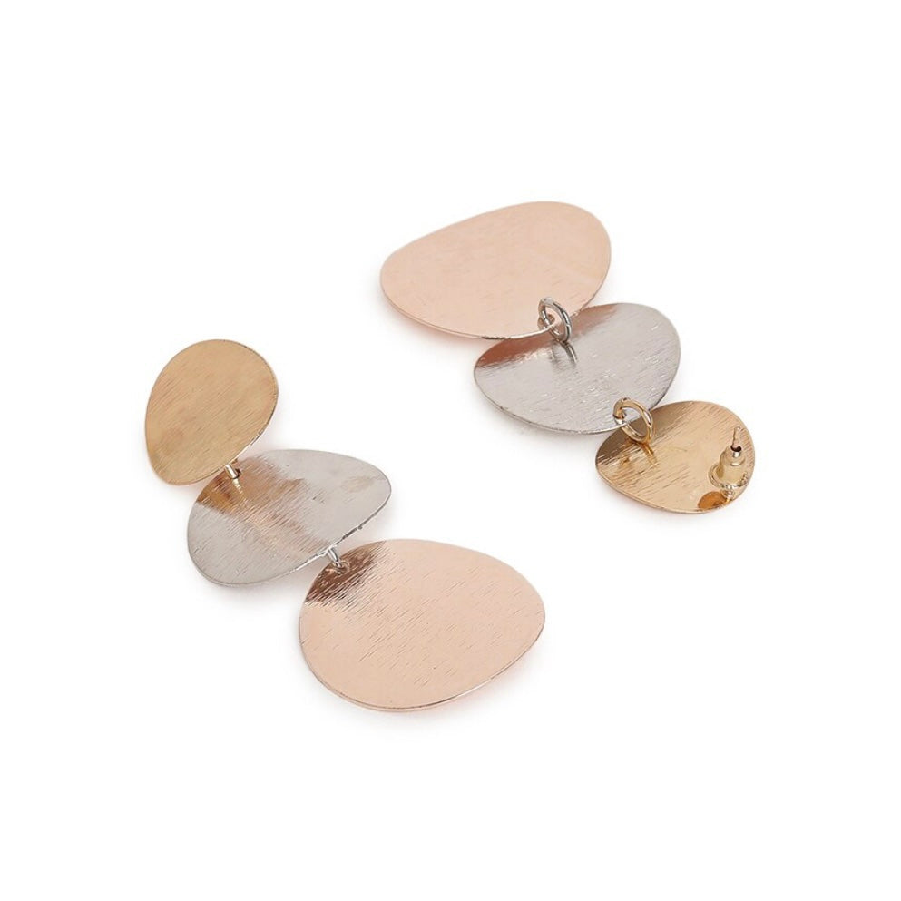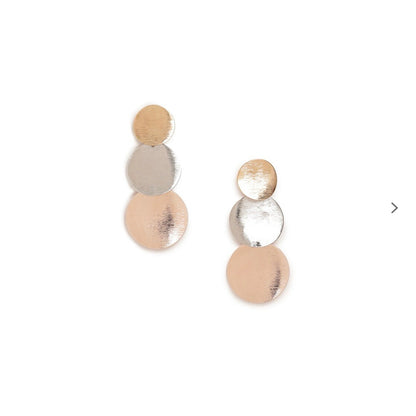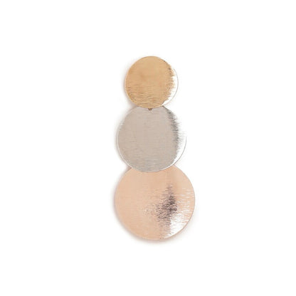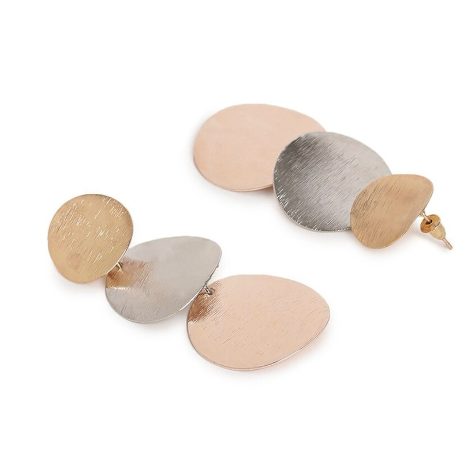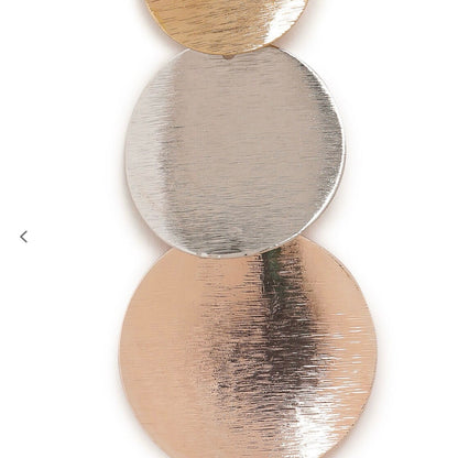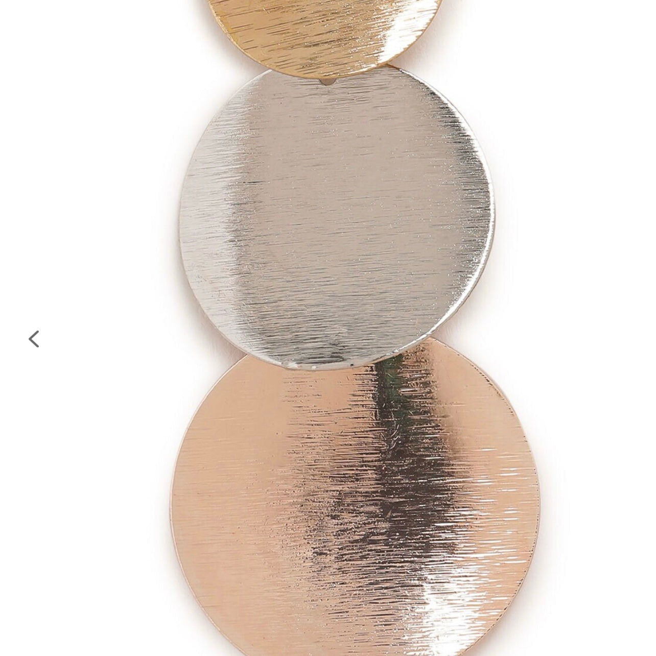 Elevate your style with these stunning two-tone metal disc earrings. Crafted with a combination of gold and silver discs, these statement earrings are the perfect accessory to add a touch of sophistication to any outfit. The contrasting tones create a striking visual appeal, making them a versatile choice for both casual and formal occasions. With their unique design and high-quality craftsmanship, these earrings are sure to become a staple in your jewelry collection.