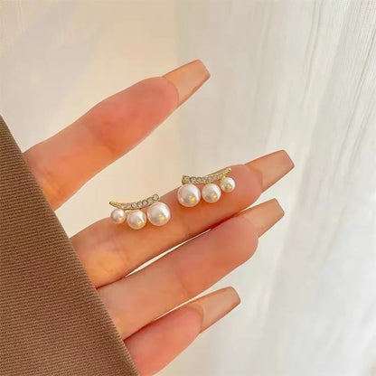 Simple and elegant pearl design earrings, small and unique, perfect for adding a touch of sophistication to women’s daily wear.