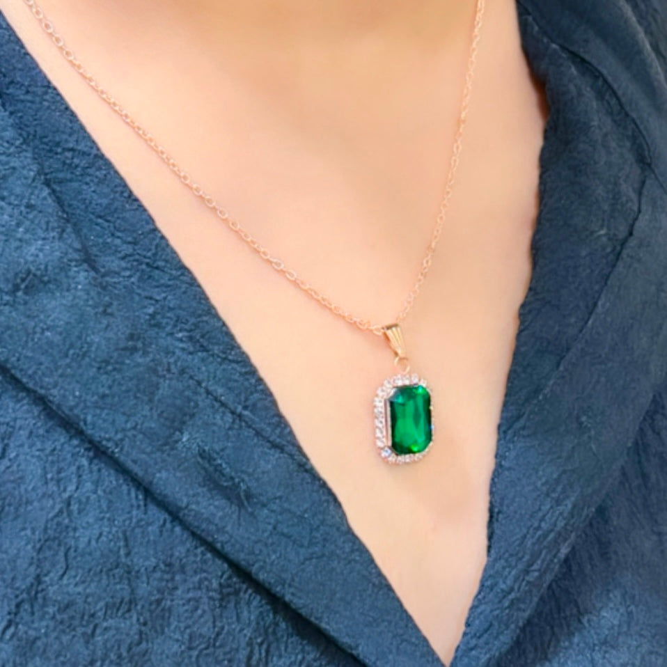 Adorn yourself with the regal beauty of this green gemstone necklace, featuring exquisite emerald stones set in a graceful arrangement, radiating luxury and sophistication for any occasion.