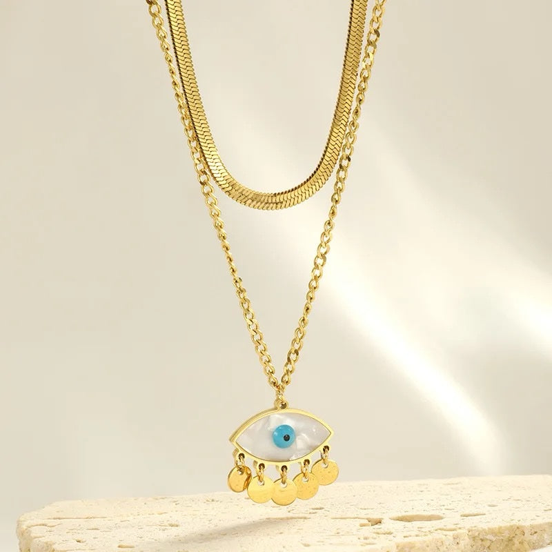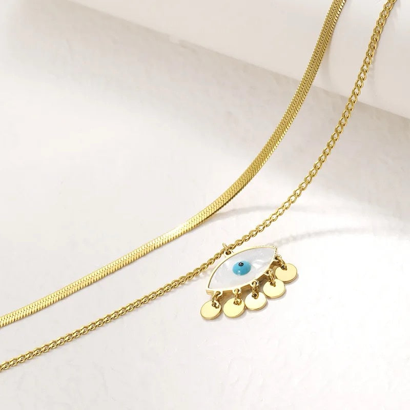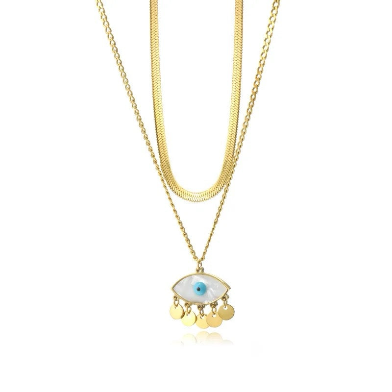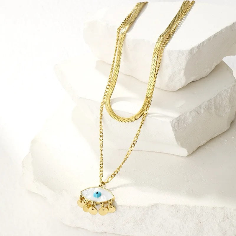 Ward off negative energy and embrace protection with our Evil Eye Necklace. Adorned with the iconic symbol of the evil eye, this necklace serves as a talisman of good luck and spiritual defense. Crafted with intricate detail and available in various styles, our Evil Eye Necklace adds a touch of mystique and style to any outfit, making it the perfect accessory for those seeking both fashion and symbolism.