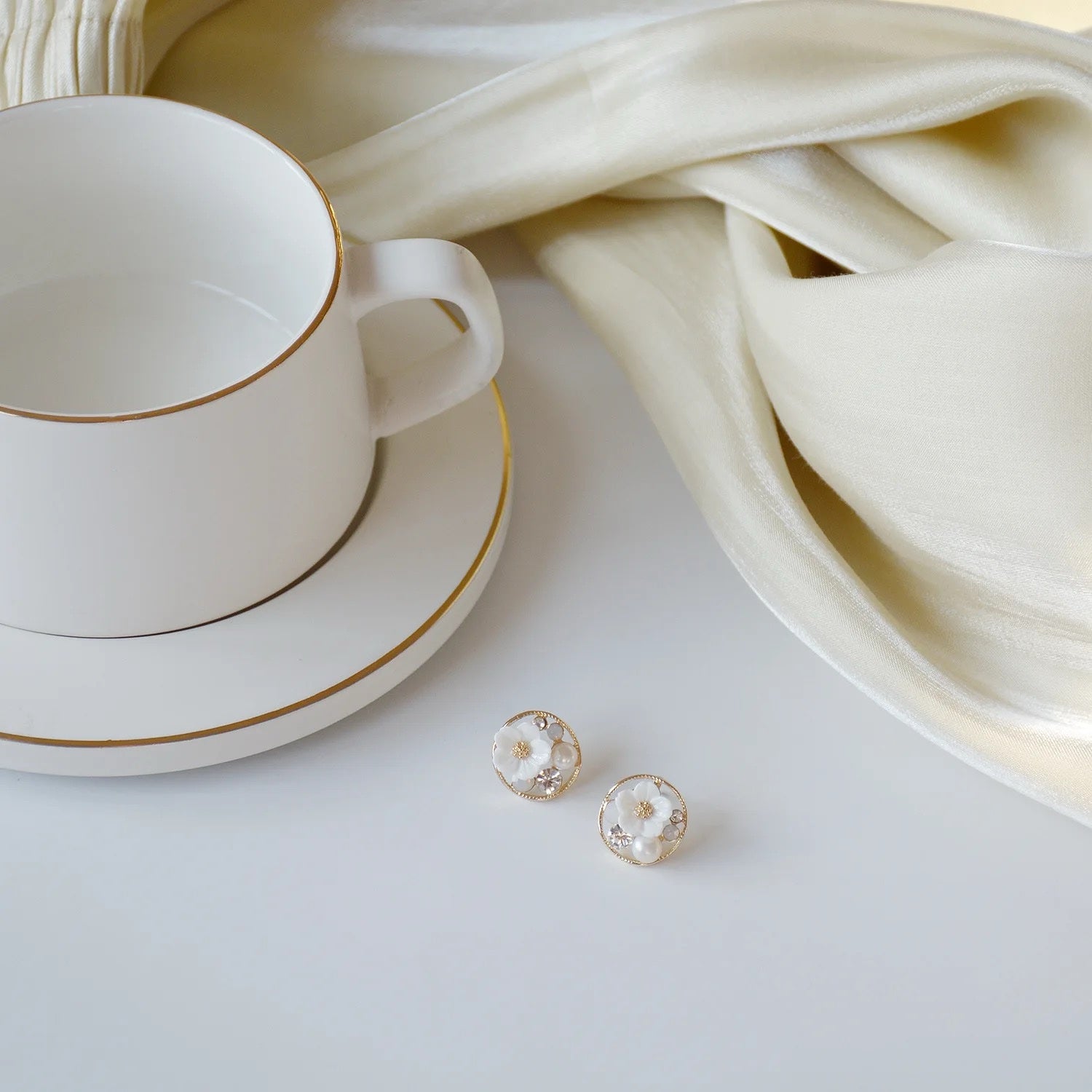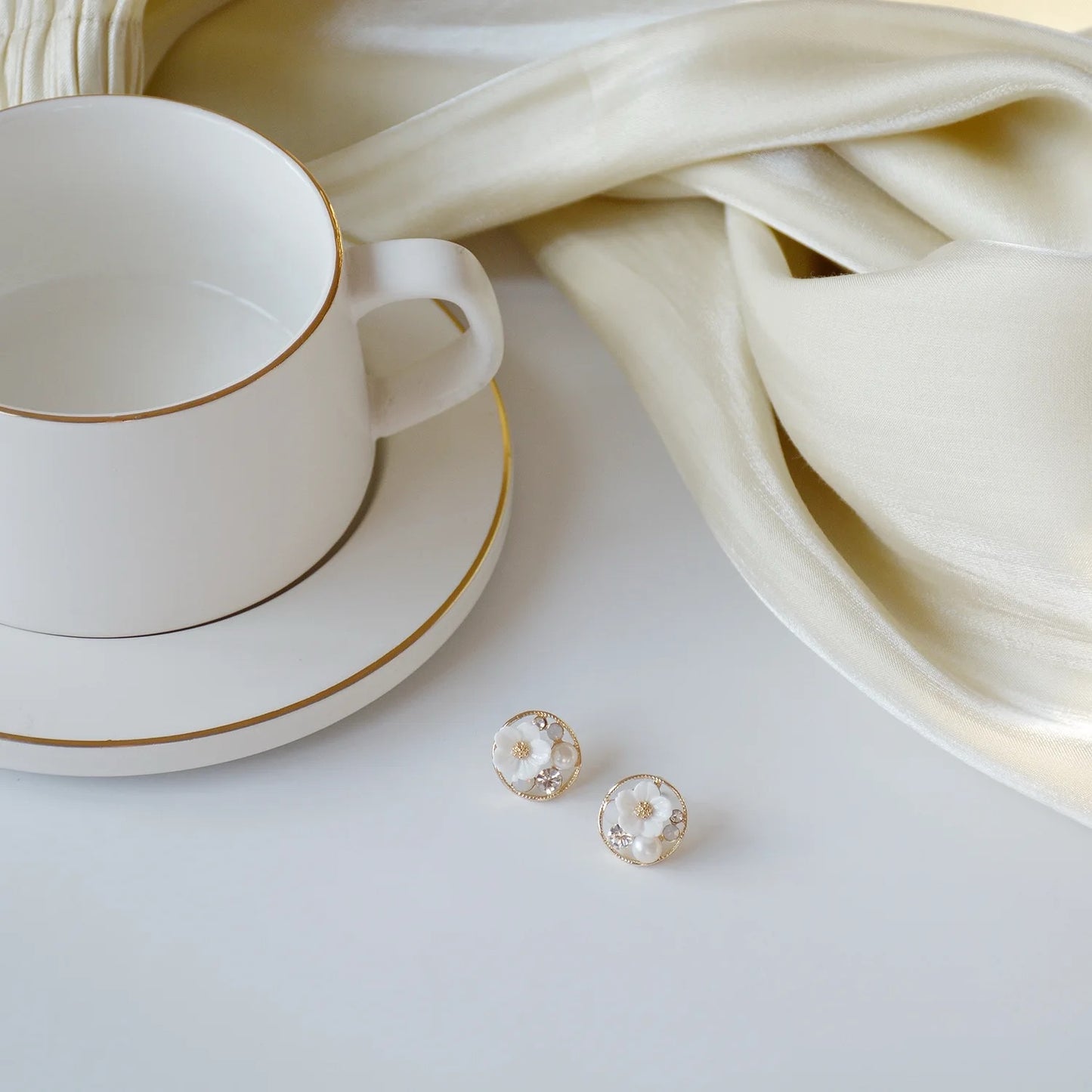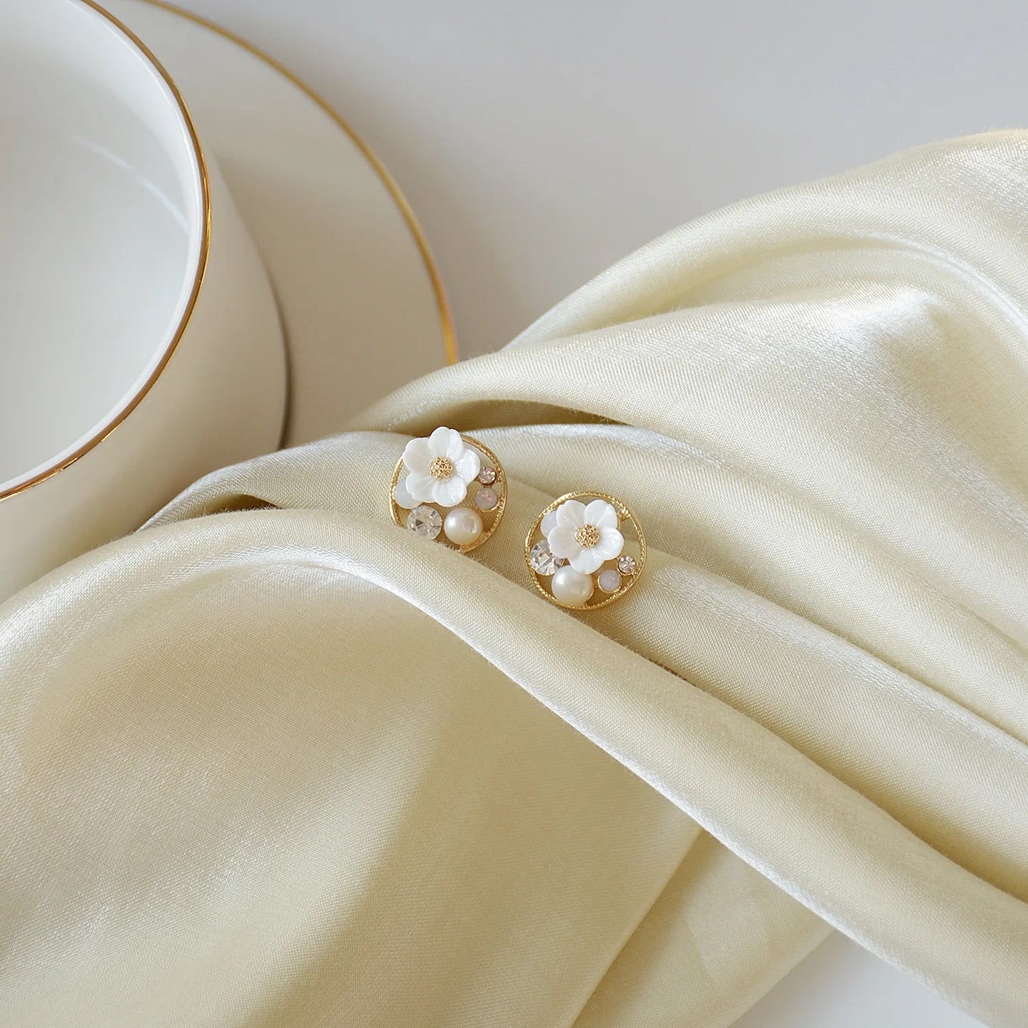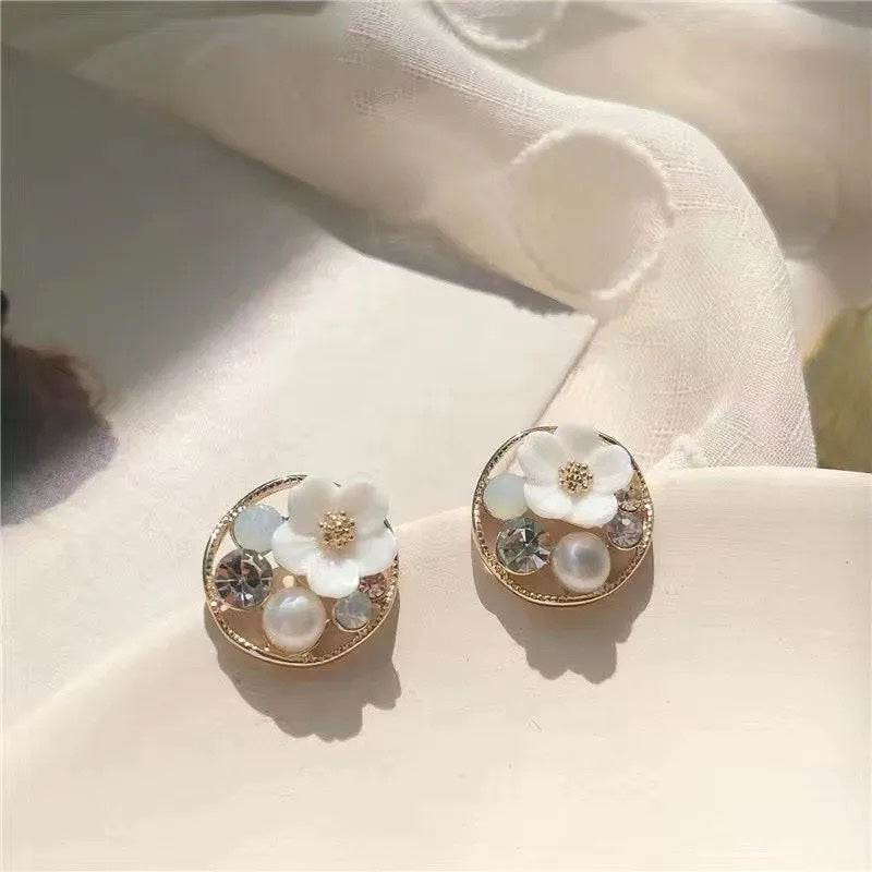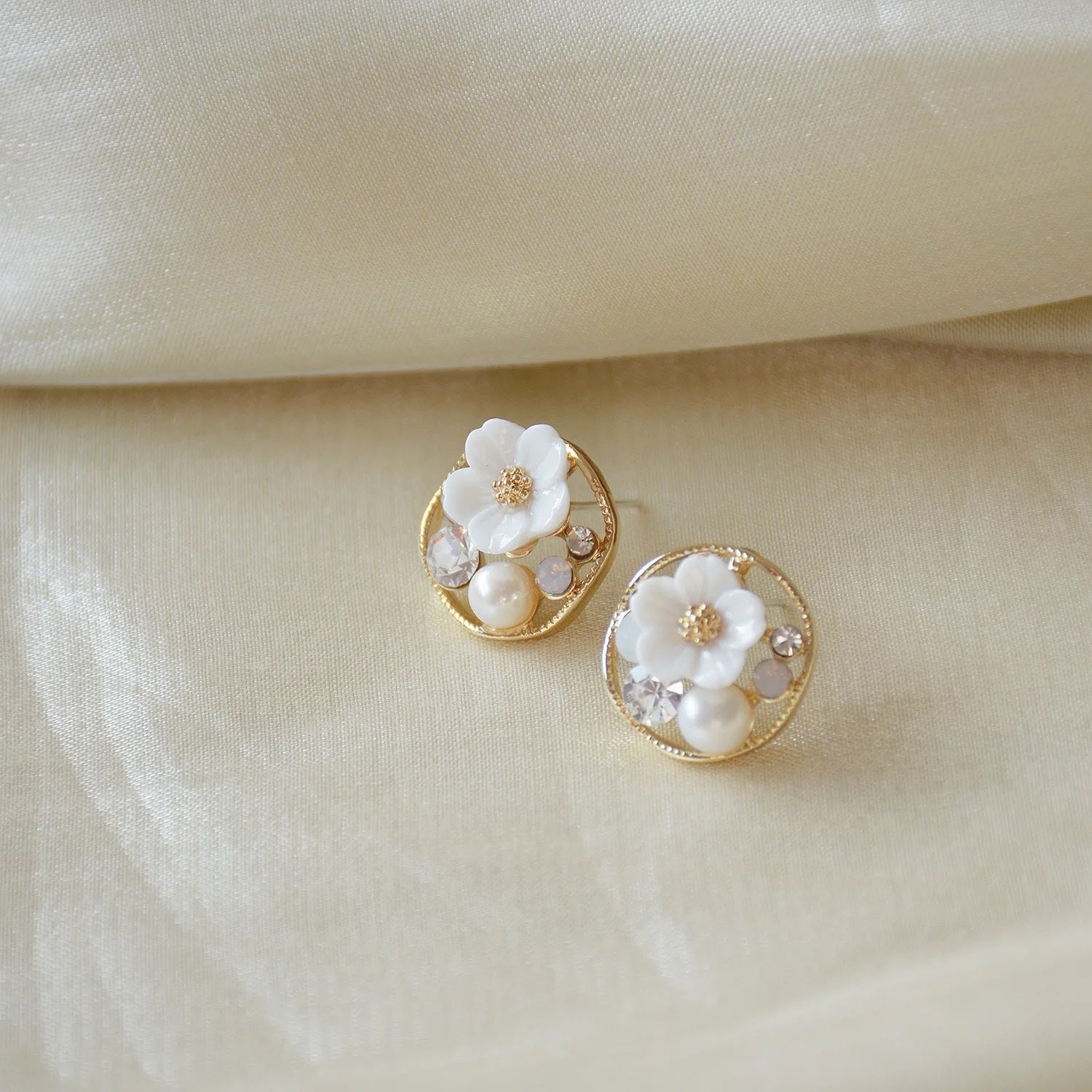 Stylish earrings featuring delicate flower designs and faux pearls, perfect for adding an elegant touch to any look.