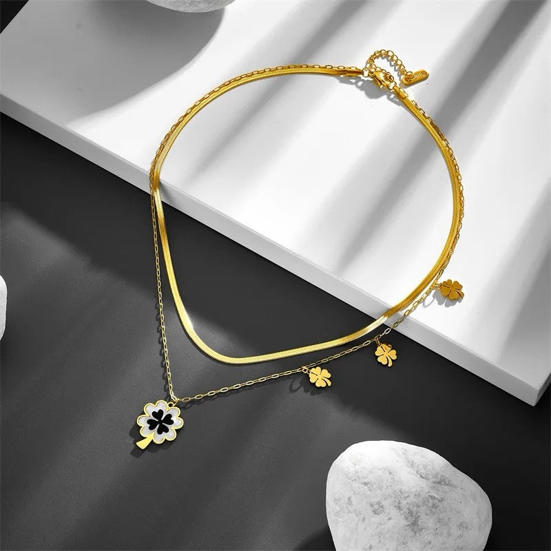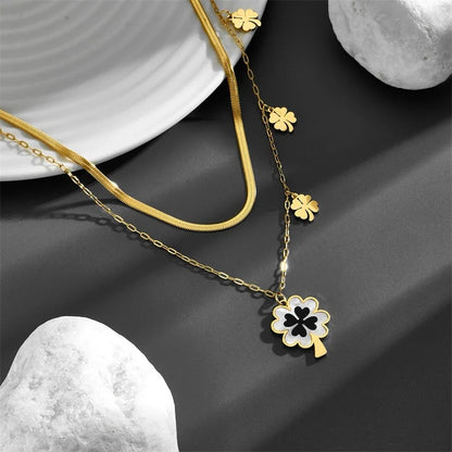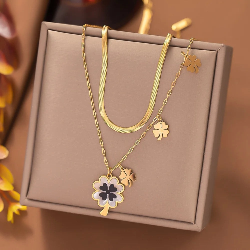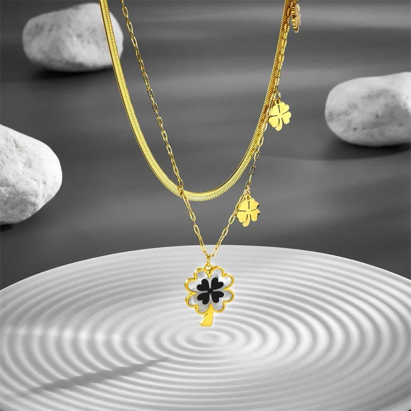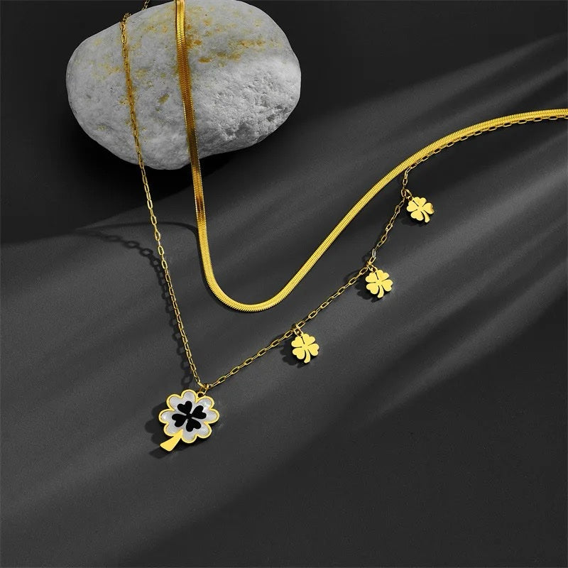 Elevate your style with our stainless steel fashion necklace featuring a luxurious four-leaf pendant. Adorned with snake blade chains, this clavicle necklace for women exudes sophistication and elegance, making it the perfect accessory for adding a touch of glamour to any ensemble.
