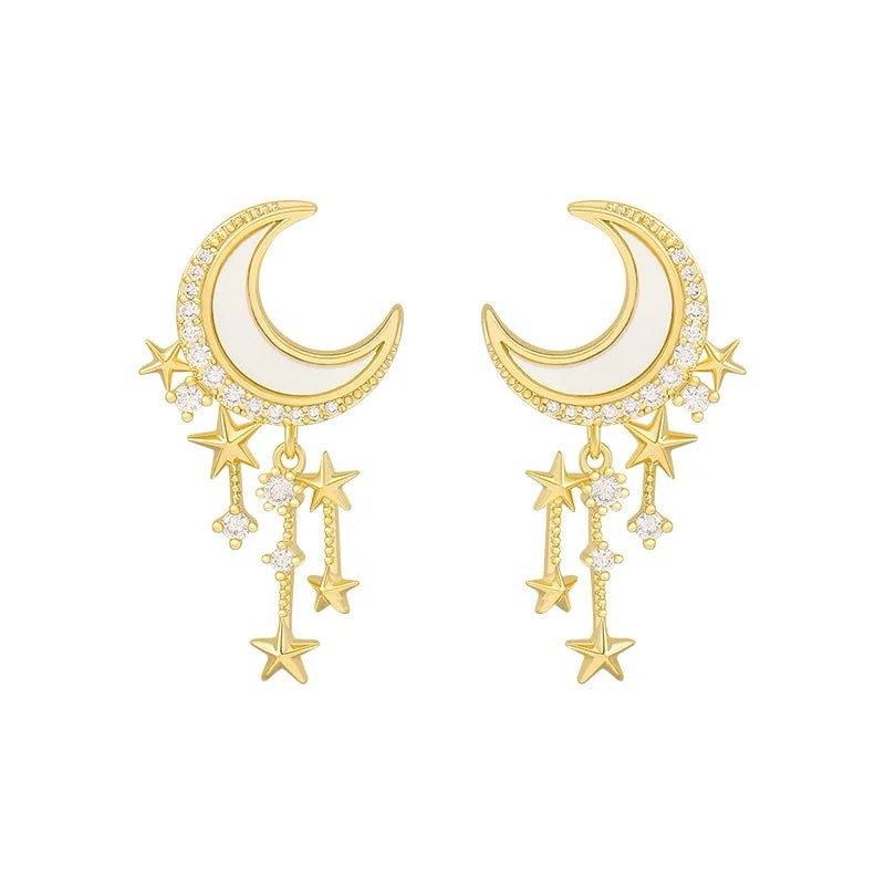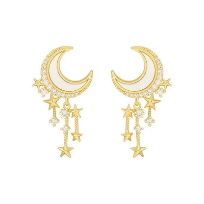 Glamorous Rhinestone Decor Star Moon Drop Earrings