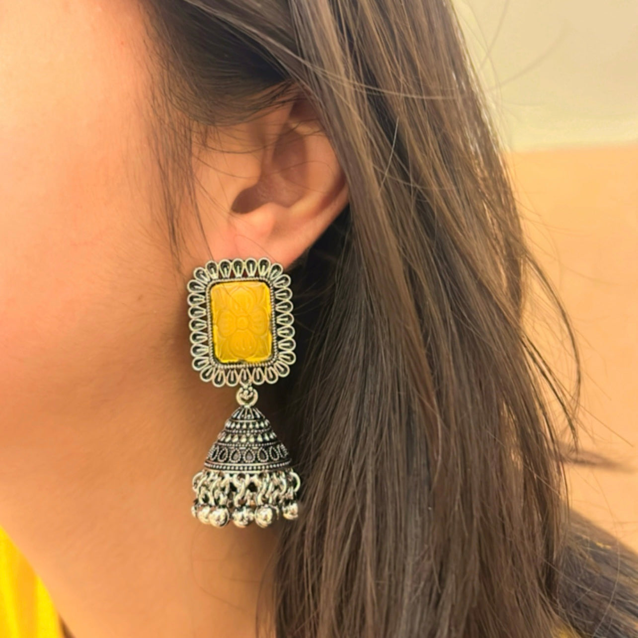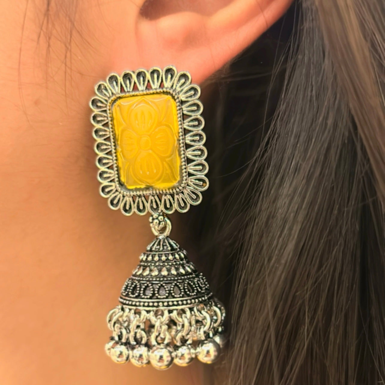 Let the golden glow illuminate your presence, making a statement of grace and sophistication. Perfect for any occasion, these jhumkas are a must-have accessory for those who appreciate timeless beauty with a contemporary twist.