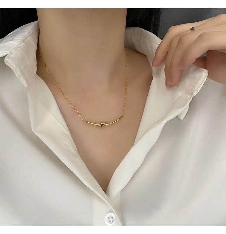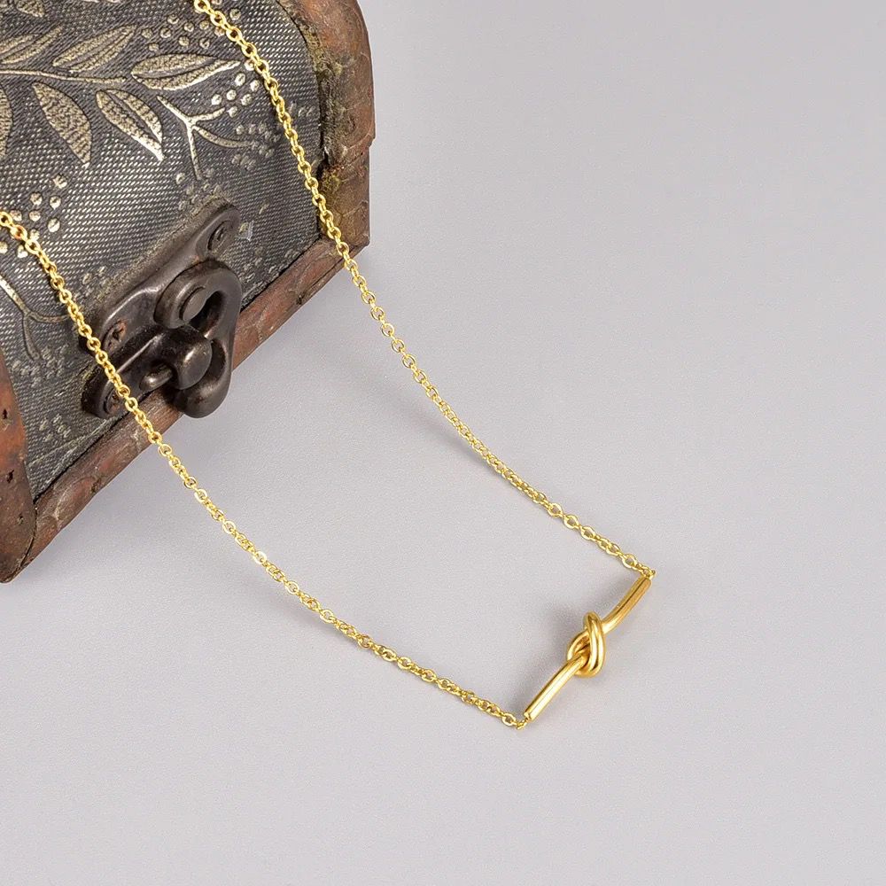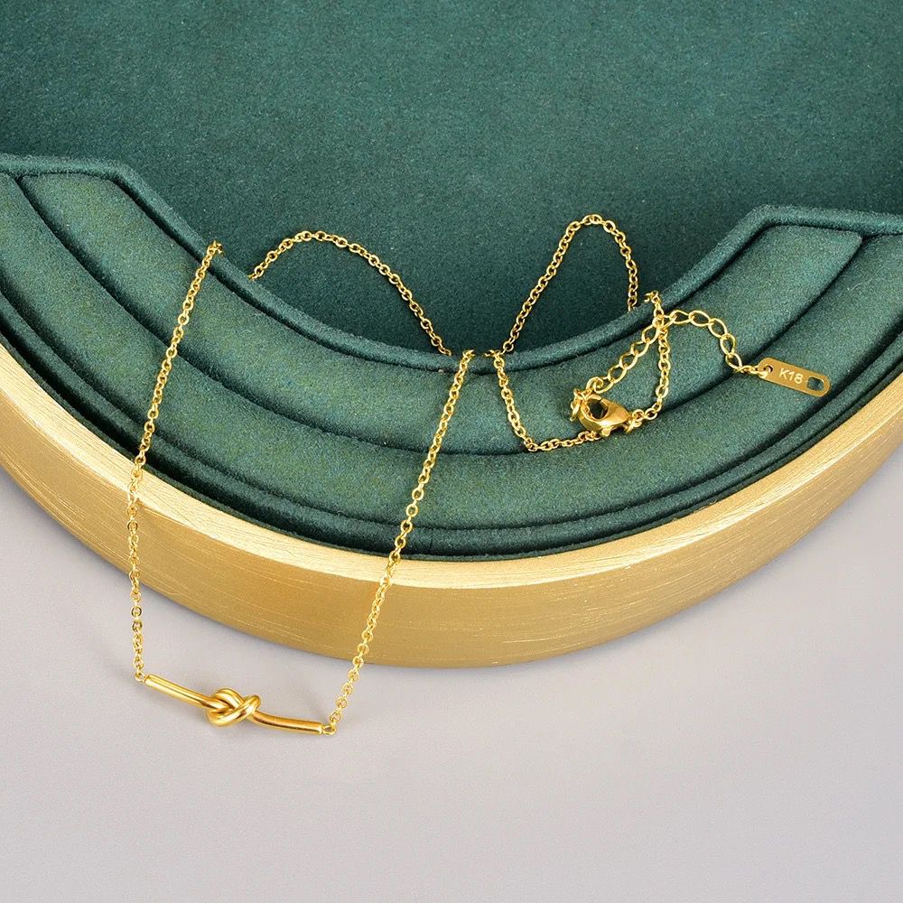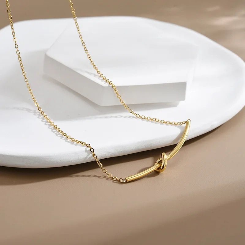 Symbolizing unity and strength, this 18K gold-plated knotted necklace is a chic and sophisticated accessory. Perfect for adding a touch of elegance to any ensemble, from casual to formal.
