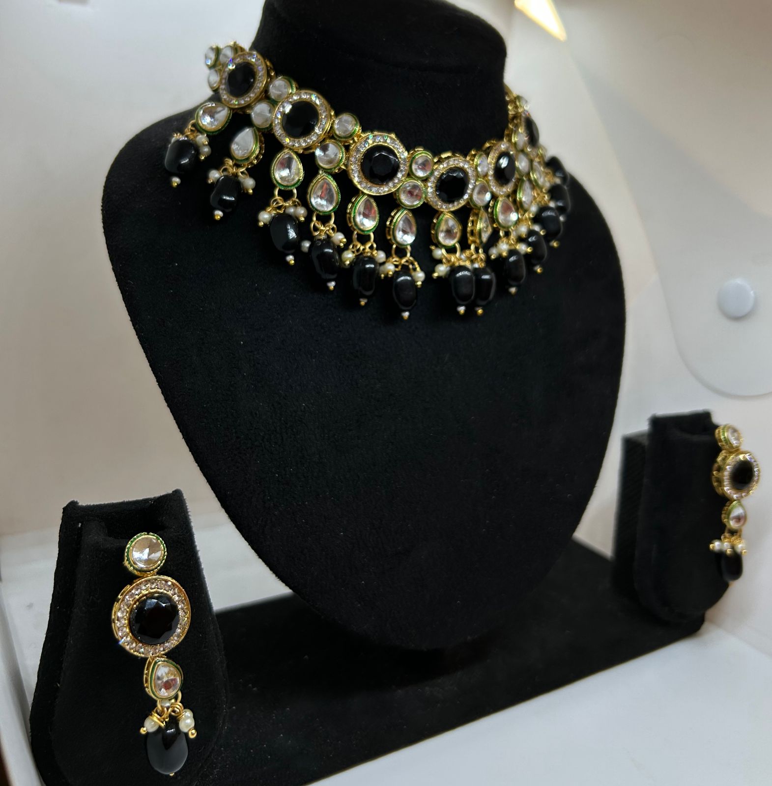Experience the luxurious beauty of the Majestic Noir Kundan Necklace Set with Earrings and add a touch of elegance and sophistication to your jewelry collection. Get yours today and make a statement that will be remembered for years to come.