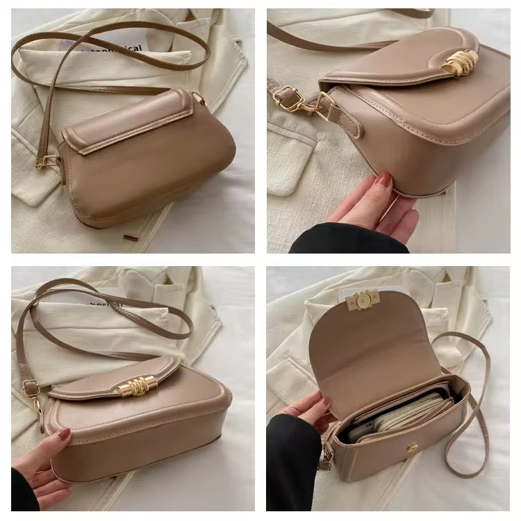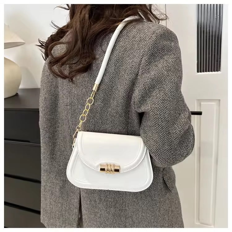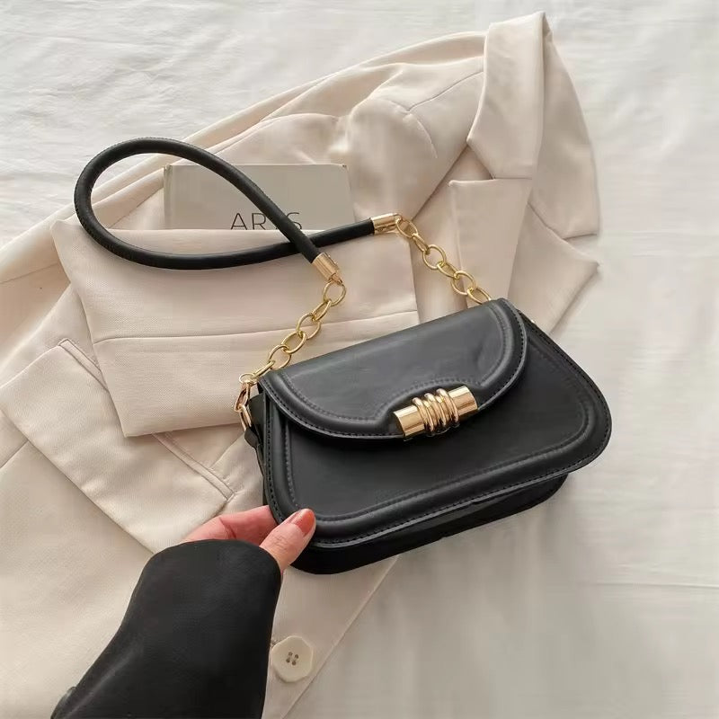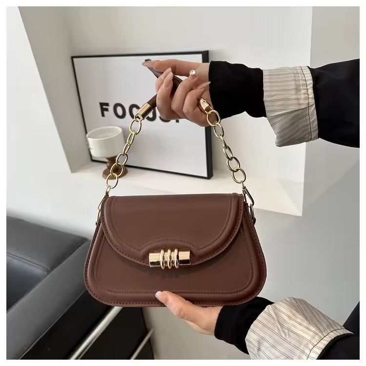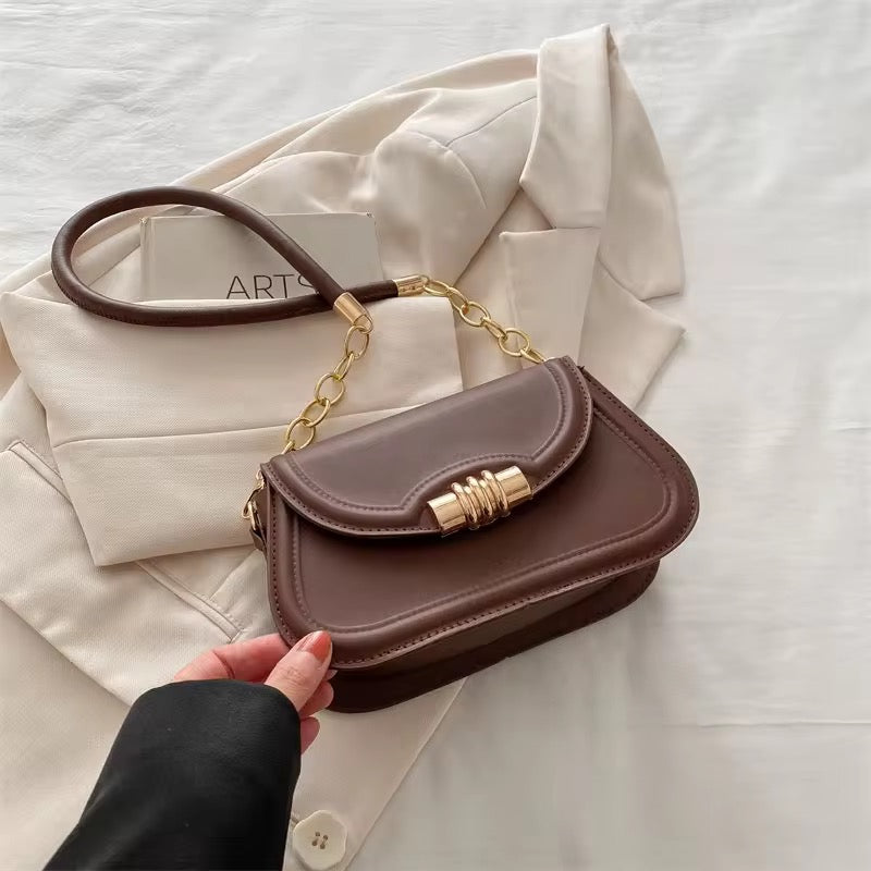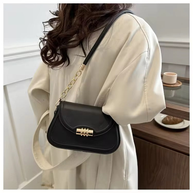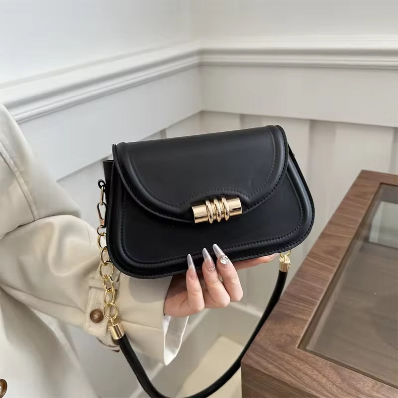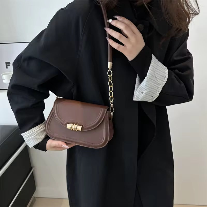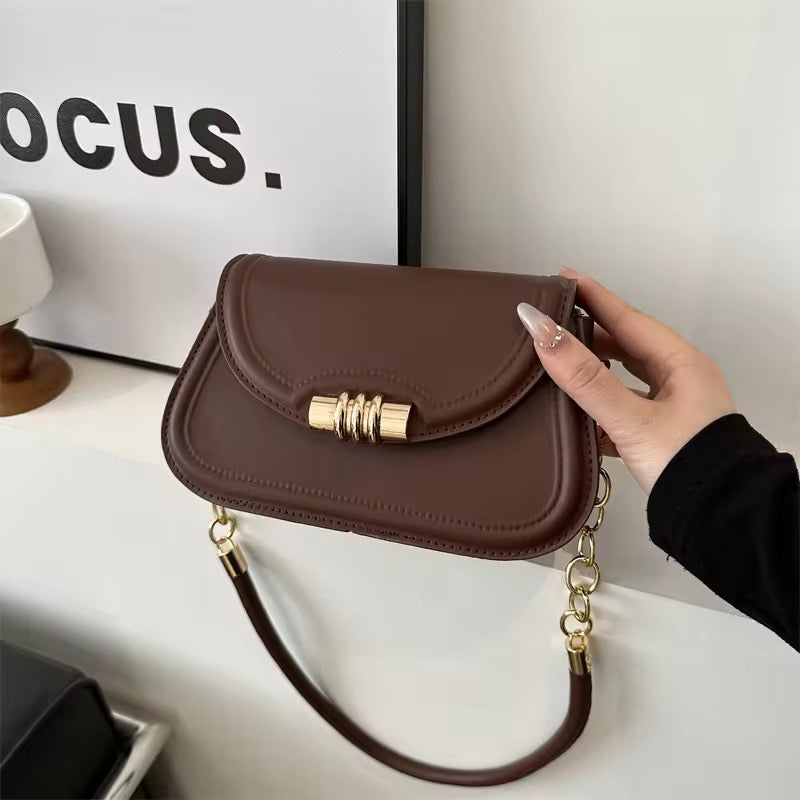 Add timeless elegance to your look with this minimalist sling bag featuring a sleek gold clasp and detachable chain strap. Perfect for everyday use or evening outings. Available in versatile shades to match every mood and outfit.