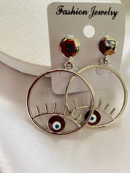 Add a touch of mysticism to your style with these stunning Mystical Eye Earrings. Featuring the powerful symbol of the evil eye, these earrings are perfect for warding off negative energy and bringing good luck. Made with high-quality materials and expert craftsmanship, these earrings are sure to become a cherished part of your jewelry collection. Whether you wear them for protection or simply for their stylish look, these earrings are a must-have accessory for any fashion-forward individual. So, bring a touch of magic to your everyday outfits with these beautiful Mystical Eye Earrings.