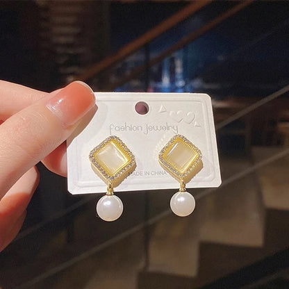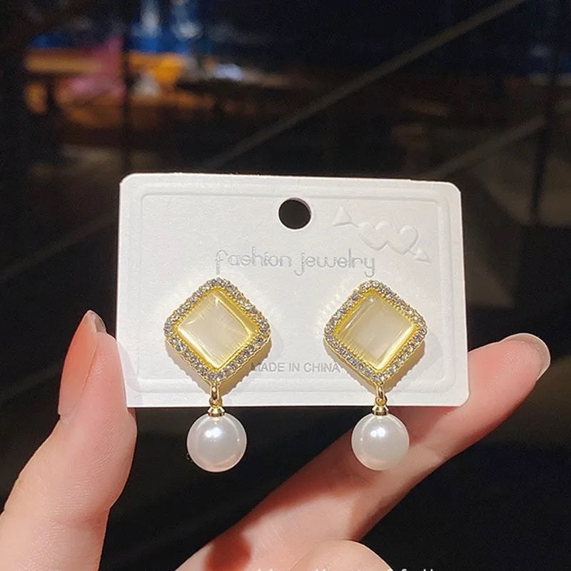 Embrace internet celebrity style with our Opal Pearl Diamond Elegance Earrings. This unique pair features diamond-shaped opal pearls, adding an elegant and niche touch to your ensemble. Elevate your fashion statement effortlessly with these earrings that capture attention and reflect the sophistication of contemporary trends. Make a statement with this chic and elegant accessory designed for the fashion-forward.