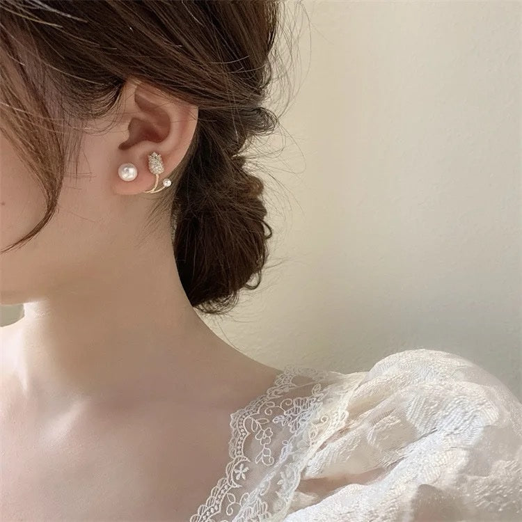 Embrace a high sense of light luxury with our New Pearl Tulip Flower Earrings designed for women. These stud earrings boast a captivating design that combines the delicacy of pearls with the elegance of tulip flowers. The rear hanging feature adds a unique fashion-forward touch, making these earrings a must-have for those who appreciate distinctive jewelry. Elevate your style with the perfect blend of sophistication and trendy design in this exquisite pair of earrings.
