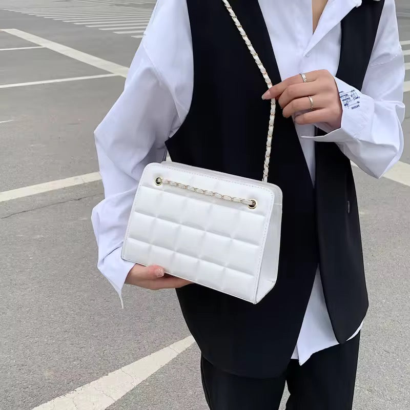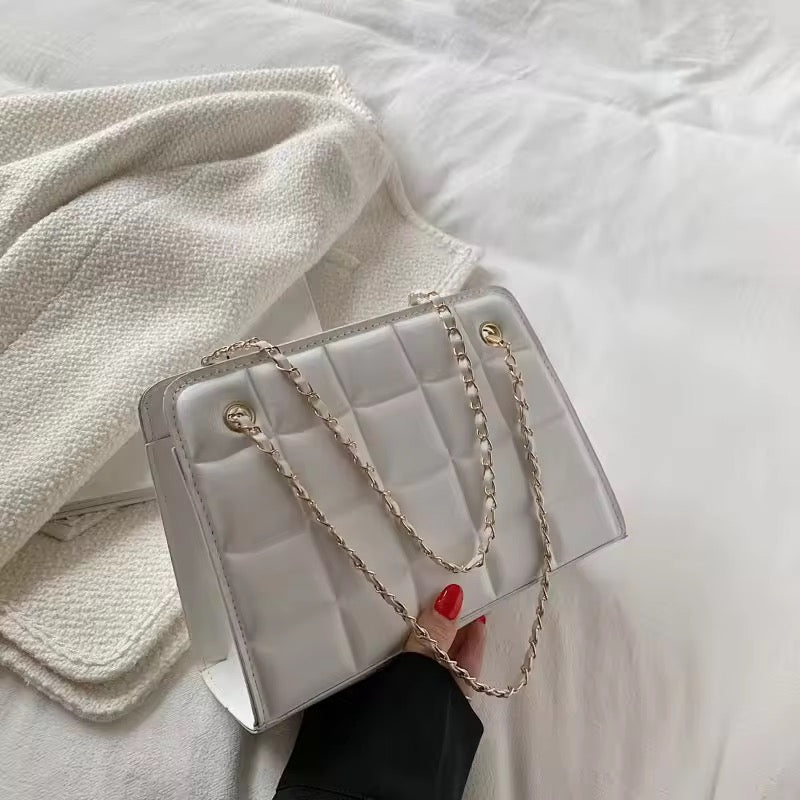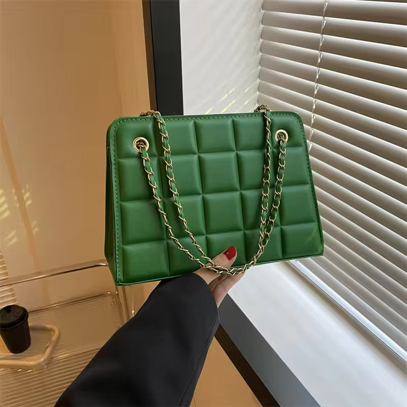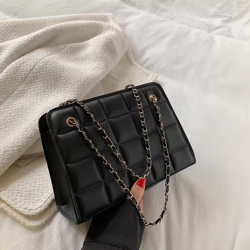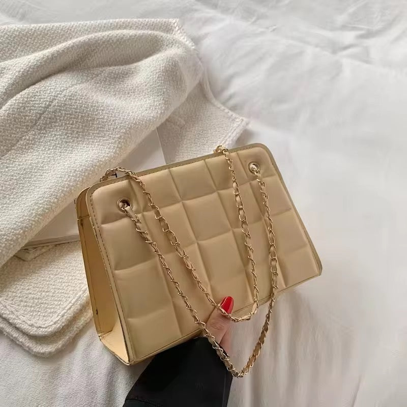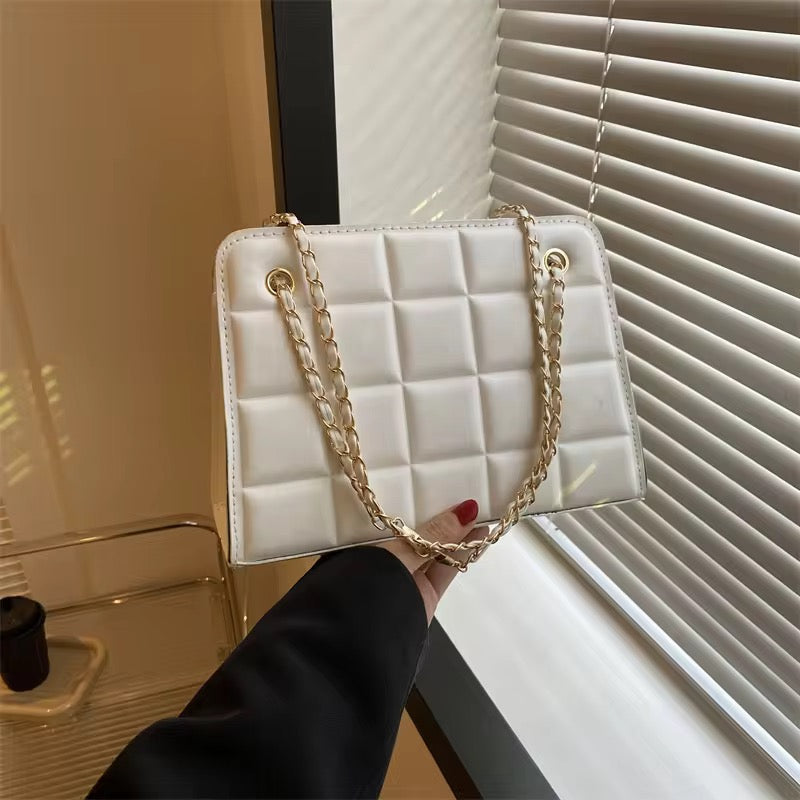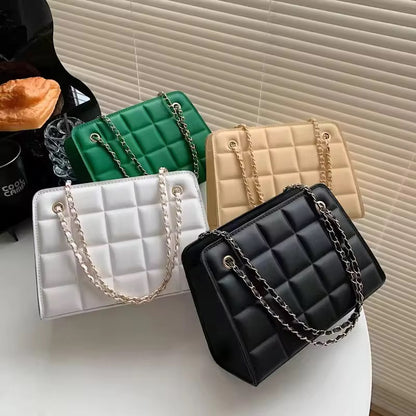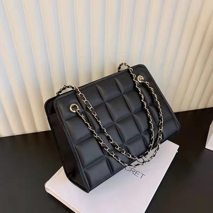 Add a touch of luxury to your wardrobe with this chic quilted tote bag. Designed with a stylish gold chain strap and spacious interior, it’s perfect for work, casual outings, or evening glam. Available in classic and bold colors to suit every style!