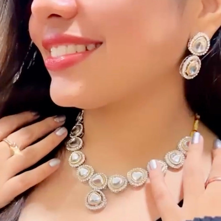 Experience the luxurious beauty of the Radiant Glow Polki Necklace with Earrings and add a touch of elegance and sophistication to your jewelry collection. Get yours today and make a statement that will be remembered for years to come.