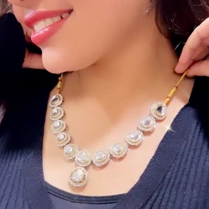 The timeless beauty and intricate design of this set make it a perfect gift for a loved one on a special occasion, such as a wedding, anniversary, or birthday. The Radiant Glow Polki Necklace with Earrings is a beautiful addition to any jewelry collection and is sure to leave a lasting impression wherever it is worn.