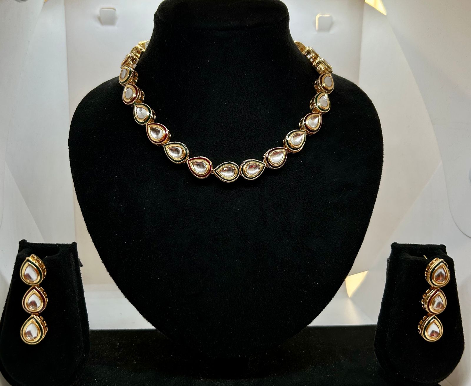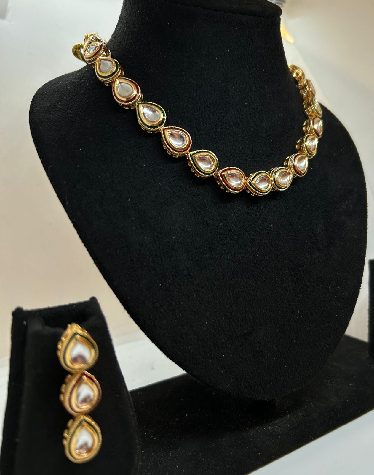 Experience the understated beauty of the Radiant Single Line Kundan Necklace Set with Earrings and add a touch of elegance and simplicity to your jewelry collection. Get yours today and make a statement that will be remembered for years to come.