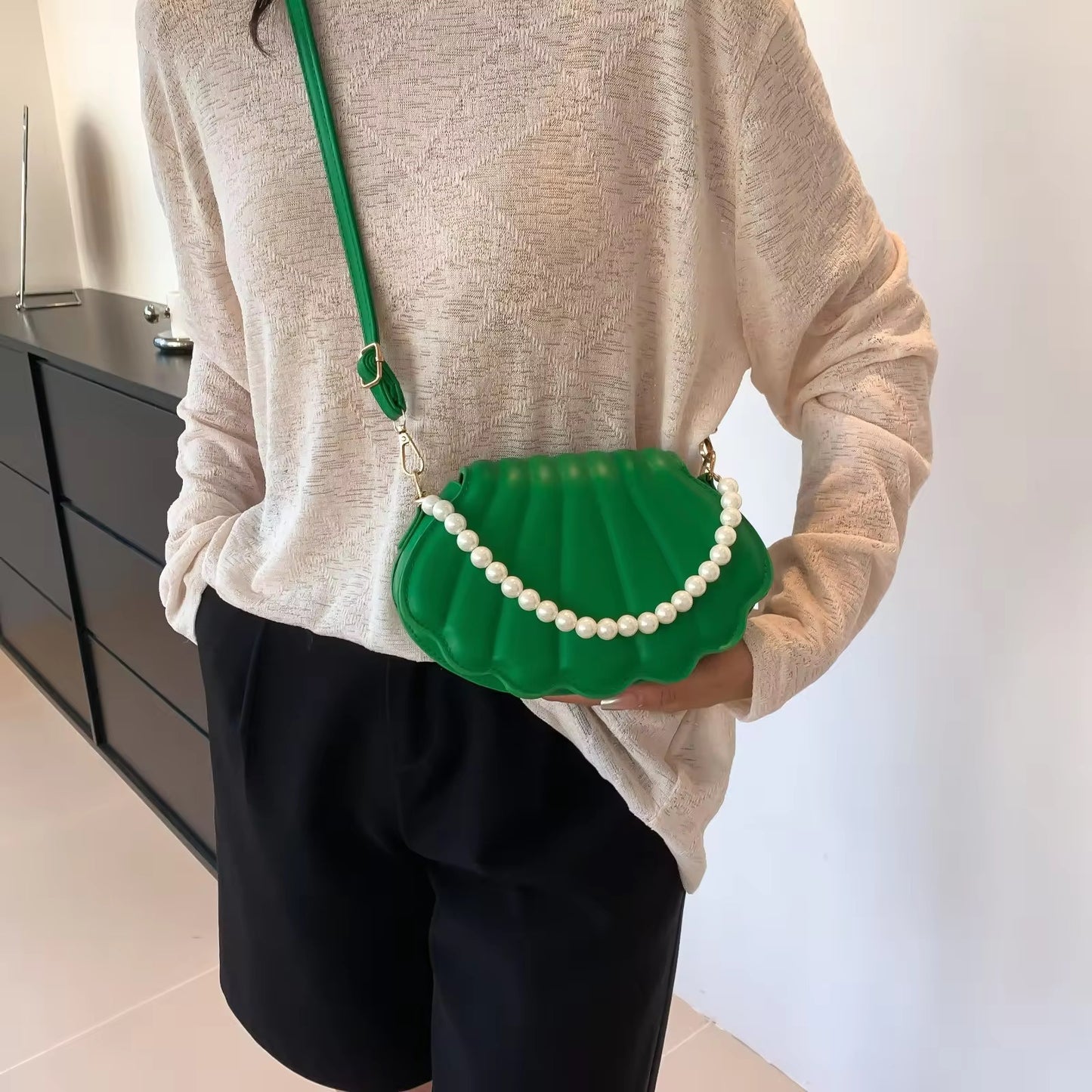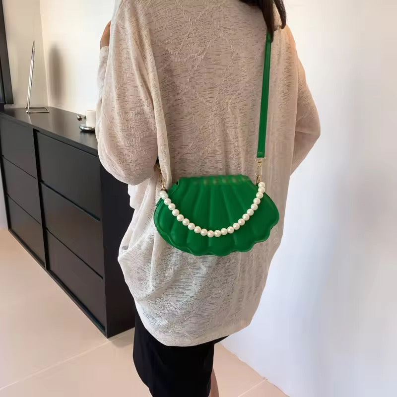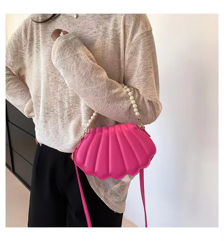 Make a statement with this stunning shell-shaped crossbody bag, adorned with elegant pearl detailing. Compact yet stylish, it’s perfect for adding a touch of charm to any outfit. Ideal for casual outings, parties, or beach vibes! Available in vibrant colors.